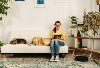 Woman dogs and robot hoover