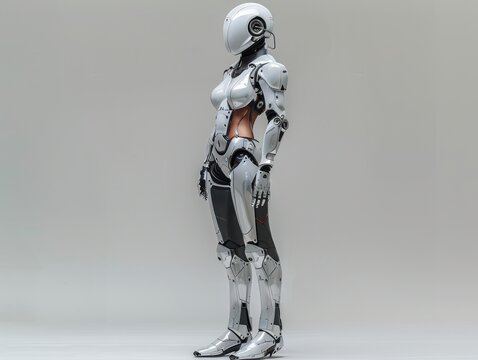 Futuristic human robot with metallic features