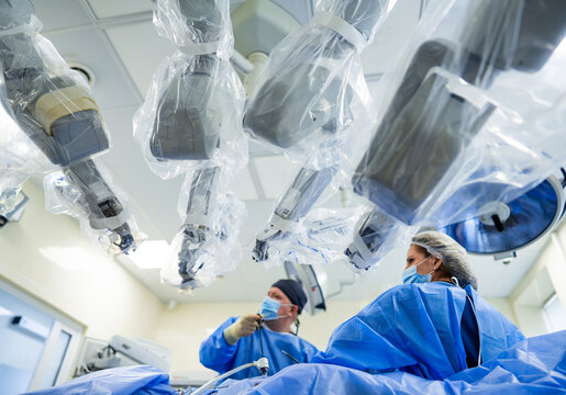 Da vinci surgery robot modern process. Futuristic operating technologies.