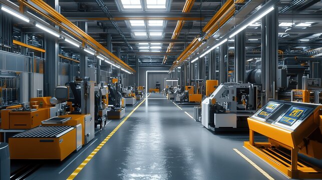 High-tech manufacturing facility with robotic arms and advanced machinery during daylight operations