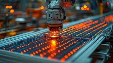 Automated manufacturing with six-axis robotic arms in modern factory