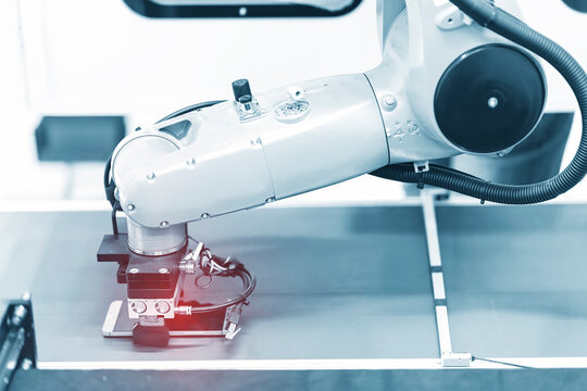 automatic robot drill machine tool at mobile industrial manufacture factory