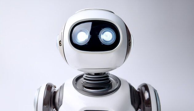 AI robot with a minimalist face screen displaying a smiling emoticon