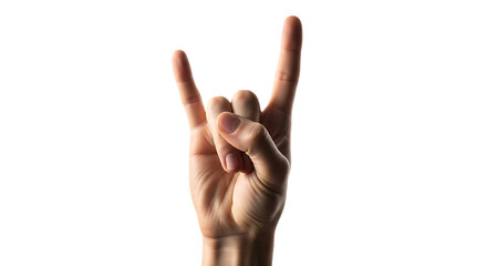 Human Hand Making Rock and Roll Gesture of the Devil Horns with Index and Pinky Fingers Extended Isolated on Transparent Background Symbolizing Music and Celebration