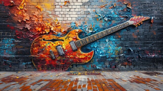 Electric Guitar Mural on Brick Wall