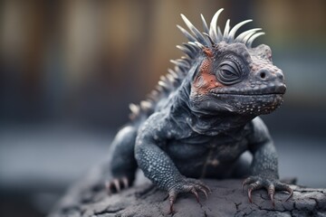 marine iguana on dark volcanic rock