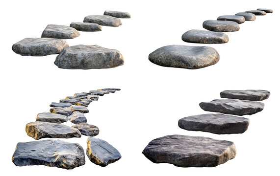 Set collection of rock stone curved stepping step stairs stairway bridge footbridge path pathway on transparent cutout PNG. Many different style. Mockup template for design