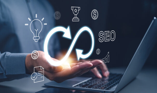 Man touching hologram business icon on virtual hud screen of strategies and targets