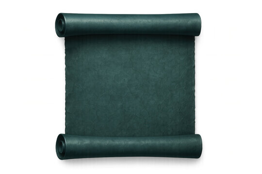 Rolled up blank teal green scroll with transparent background, creating a textured and elegant backdrop
