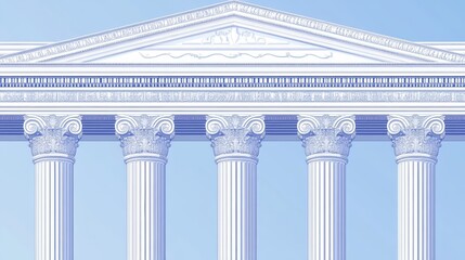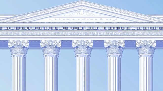Ruins of a majestic ancient temple with ornate Corinthian columns. A 3D render depicting classical Greek or Roman architecture and historical decline.