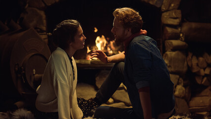 Romantic couple enjoying valentine's dinner at home