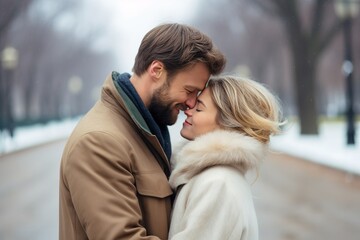 A couple of adults enjoying a charming outing together, sharing a joyful and intimate moment.