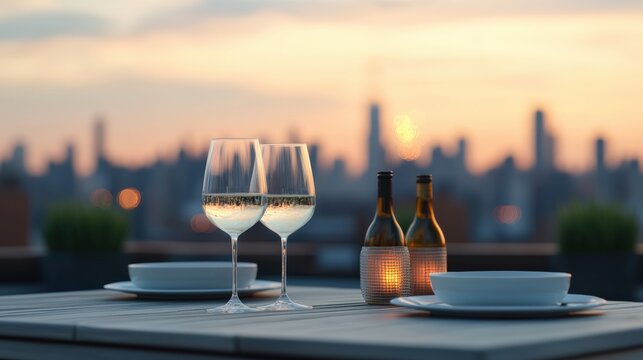 Lovely pair enjoying a romantic outing at a bistro while sipping rosé.