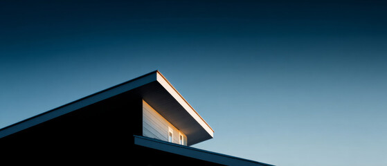 Minimalist modern house roof corner with angles against clear blue sky during sunset or sunrise