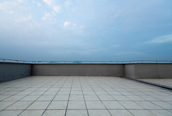 Empty rooftop night city skyline urban parking lights concrete modern architecture panoramic Empty rooftop night city skyline urban parking lights concrete modern architecture panoramic view with