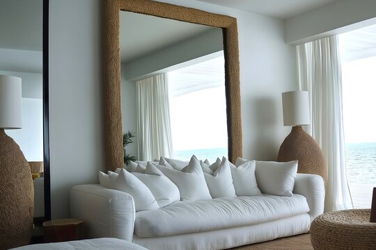 Reflection of modern living room in mirror