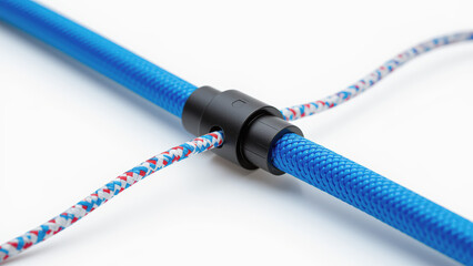Biomechatronic tendon flexible actuator braided cable blue connector robotic tension control with clean minimal style, precise, modern engineering