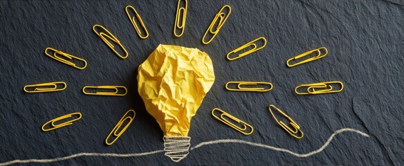 The Crumpled Paper Lightbulb Surrounded by Paperclips Symbolizing Bright Creative Ideas