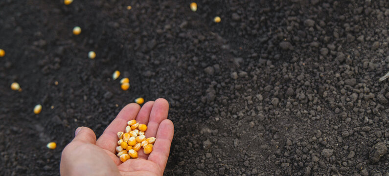 Sow seeds in the garden for rose gardens. selective focus.