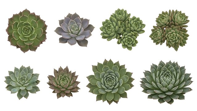 Collection of various succulent plants in different shapes and sizes isolated on white background