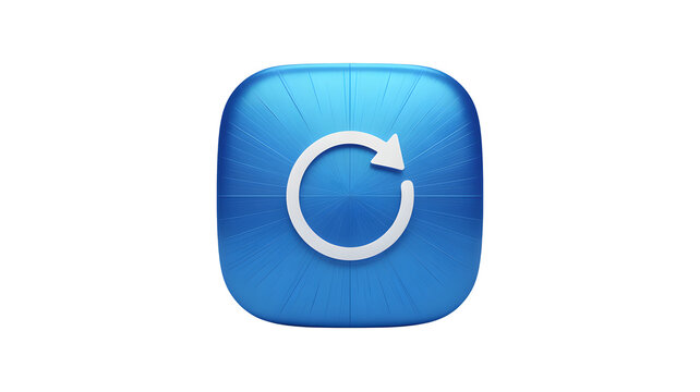 3d render refresh icon inside blue speech bubble with white rotating arrows symbol of sync update reload and restart process isolated on transparent background