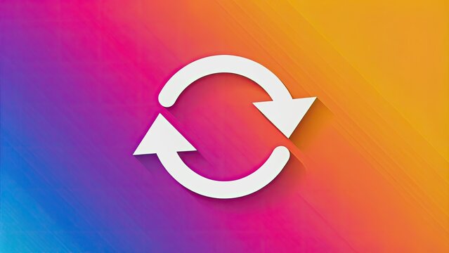 A crisp, modern refresh symbol with sleek lines and bold design stands out against a clean, vibrant solid color background, conveying revitalization.