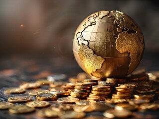 Rotating Golden Globe Made of Coins Represents Global Financial Prosperity and Growth