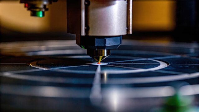 A closeup of a hightech 3D scanner mounted on a rotating platform capturing intricate details of a metal component with colorful point cloud data projected around it.