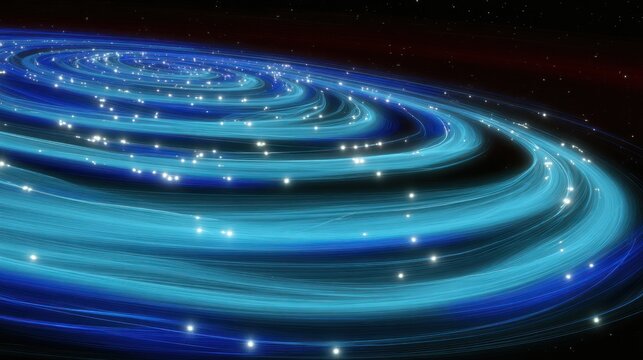 Iridescent galaxy with rotating rings and vibrant colors for cosmic space and futuristic digital art