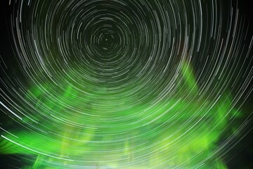Concentric star trails circling north celestial pole with bright polaris, long-exposure night sky