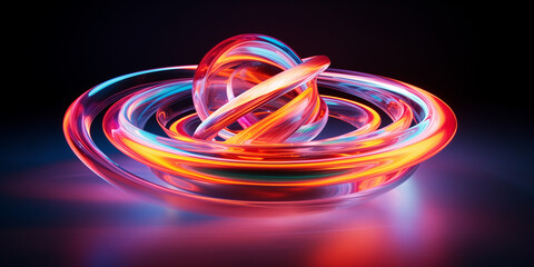 Two futuristic, metallic gears with translucent elements and colorful bands