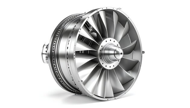 Gas turbine generator, detailed metallic structure with rotating blades, industrial energy realism