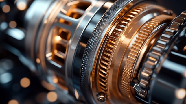 Precision Gear System Close-up, Rotating, Industrial, Bokeh Background, Engineering