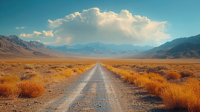 Endless road through mountainous desert landscape