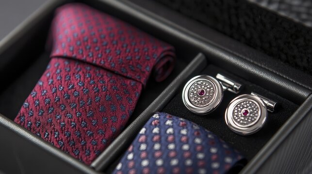 Elegant Ties and Cufflinks in Stylish Box