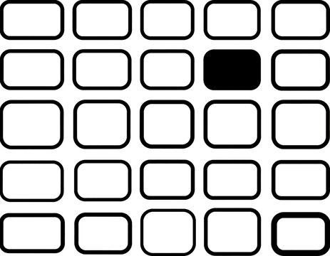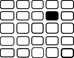 Black square amidst array of white, rounded-edge rectangles