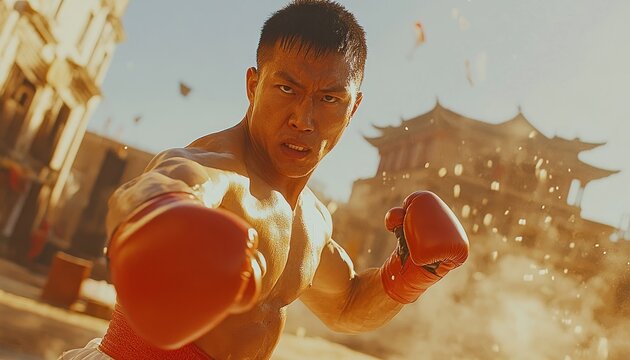 Powerful Kickboxer Delivering a Devastating Roundhouse Kick in Action, Dynamic Martial Arts Training and Motion Photography, Capture the Intensity of Kickboxing, Stunning Images of Kickboxing in