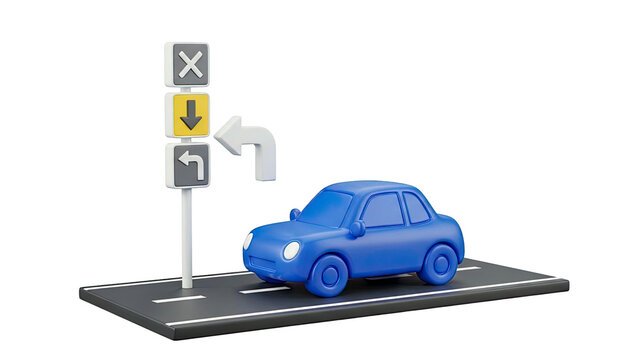 3D Blue Car and Road Signs