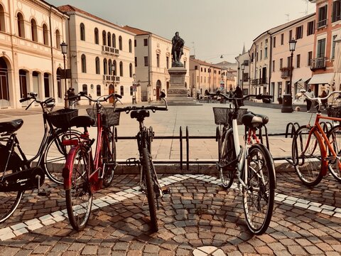 Italian town of Rovigo with Vittorio Emanuele square in a summer sunny day