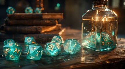Colorful Dice Set on Wood.