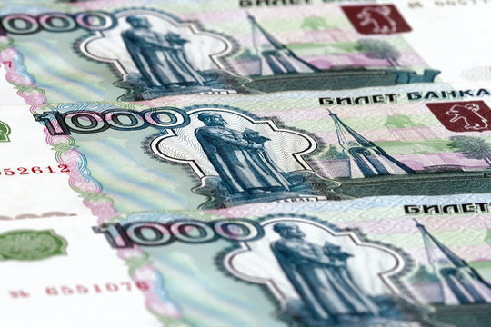 Russian ruble banknotes in blurred motion as a background
