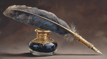 A Quill pen and an inkwell, classic writing tool, artistic inspiration