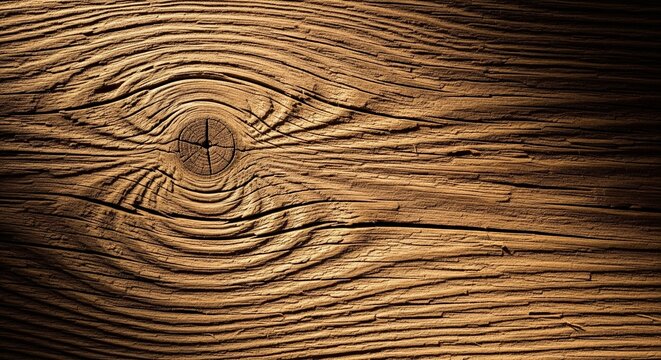 Weathered timber background showcasing a captivating eye-shaped wood knot and rugged natural patterns