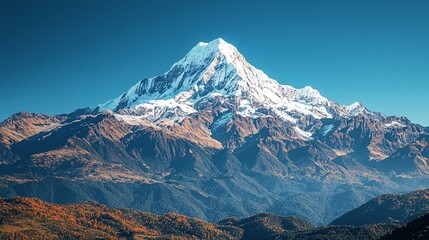 Majestic Snow-Capped Mountain Peak in Vibrant Colors under Clear Blue Sky - High-Resolution Photography