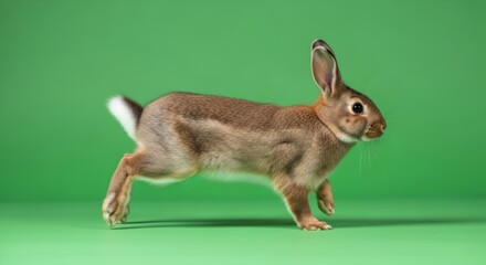 Cute jumping rabbit on green screen background. Effect for chromakey isolated for movie. Animal for advertisement and funny video.