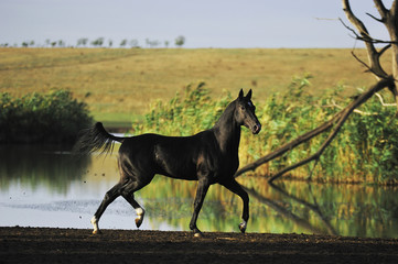 Fast Jack Russell Terrier dog is running sideways over a green meadow in spring