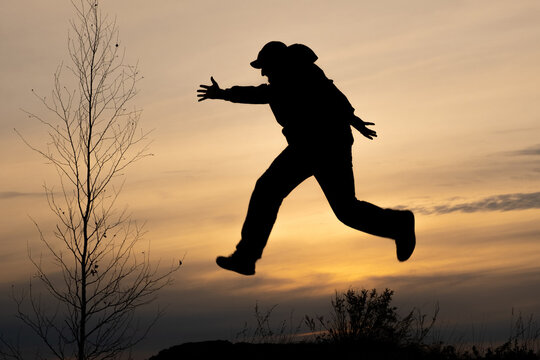 adult man running through the air legs blurred while moving