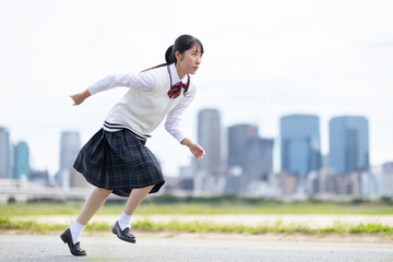 走り出す女子高生