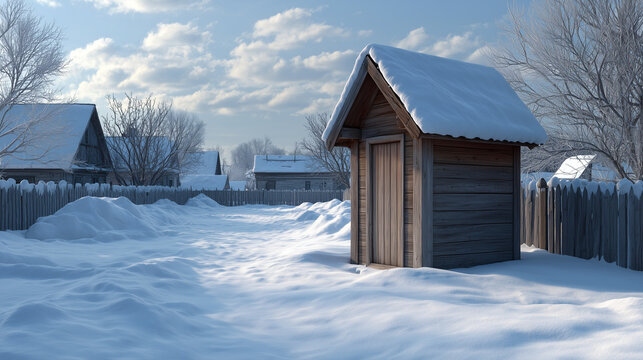 Village outhouse in snow