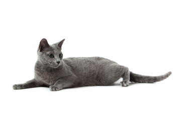 Russian Blue cat on white .